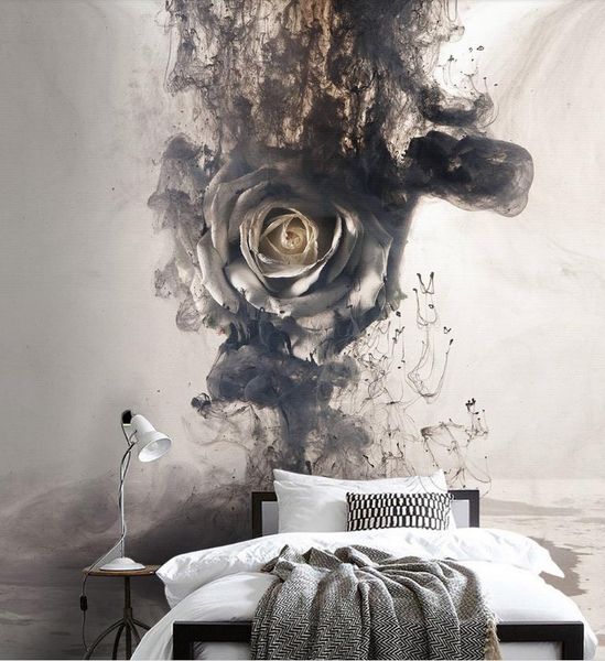 Us 8 85 41 Off Beibehang Wallpaper Custom Large High End Black And White Abstract Ink Smoke Background 3d Flowers Tv Background Wall Wallpaper In