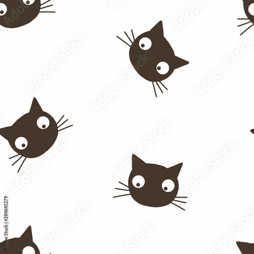 Black Cat Head Vector Seamless Pattern Spooky Kitten