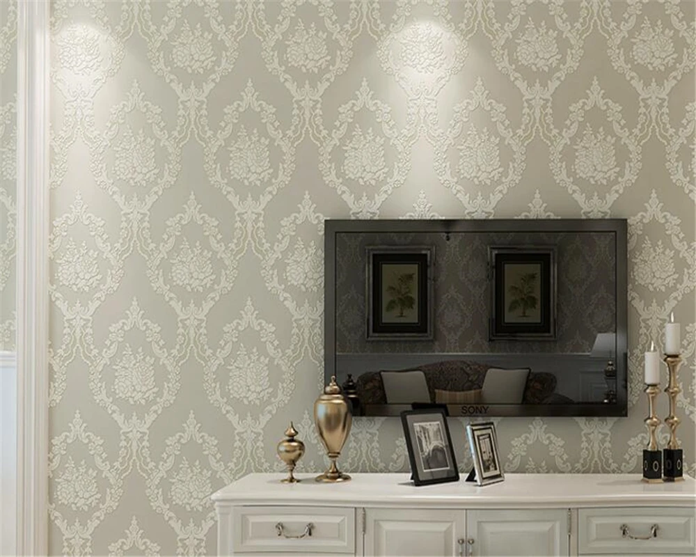 European Non Woven Wallpaper Bedroom Luxury Embossed Wallpaper 3d Flocking Damascus Living Room Tv B