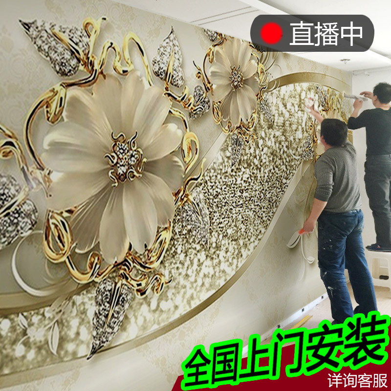 Raiev 3d Wallpaper European Luxury 3d Gold Flower Jewelry Tv