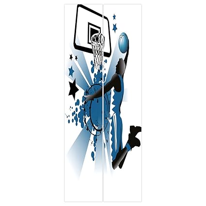 3d Door Wall Mural Wallpaper Stickers Teen Room Decor Silhouette Of Basketball Player Jumping Success Stars Illustration Black Violet Blue Mural