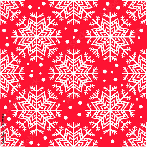 White Crossstitch Snowflakes Seamless Pattern On Red