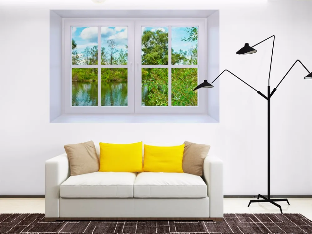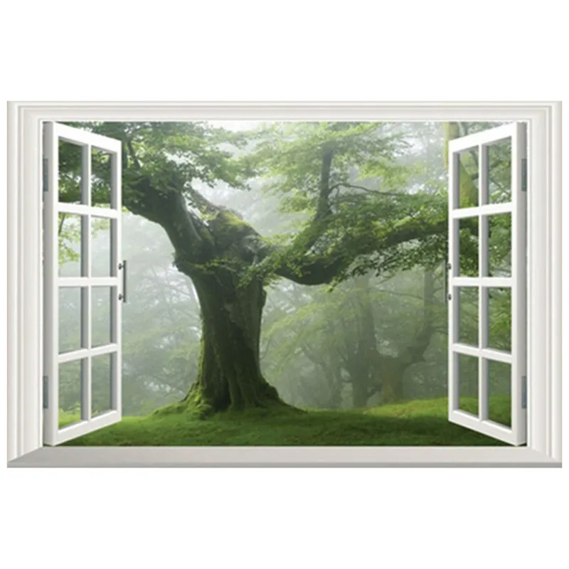Us 5 91 26 Off Free Shipping 3d Window Nature Trees Wall Decal Art Photo Waterproof Removable Wallpaper Forest Mural Sticker Vinyl Home Decor In