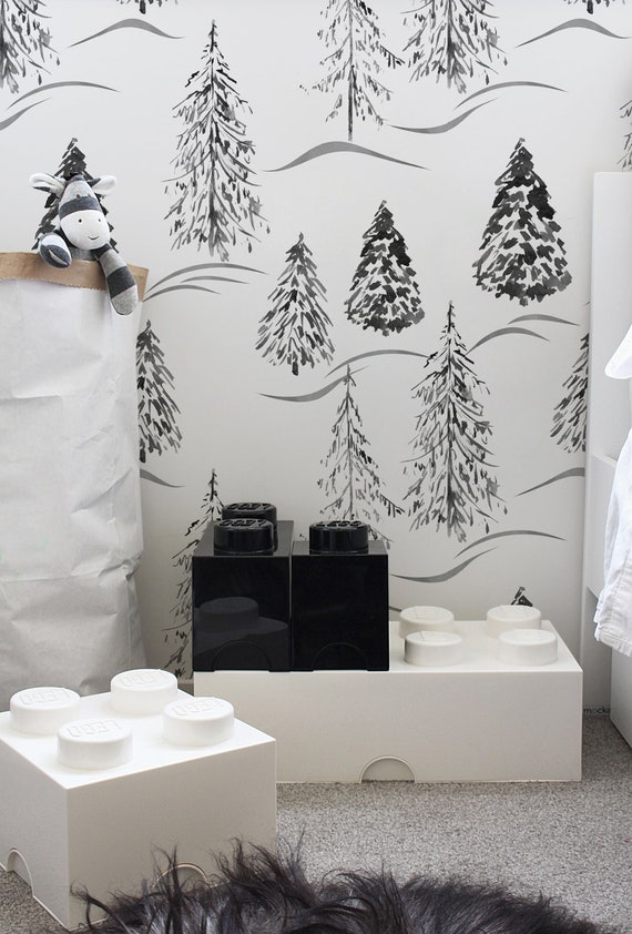 Trees Removable Wallpaper Nature Wallpaper Nursery Peel And Stick Self Adhesive Forest Wall Mural Woodland Woods Oldshool Art 14