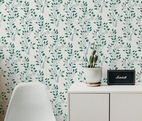 Green Leaf Trees On White Removable Wallpaper Enchanted Nature Peel And Stick Wallpaper Wall Mural Woodland Temporary Wallpaper 514