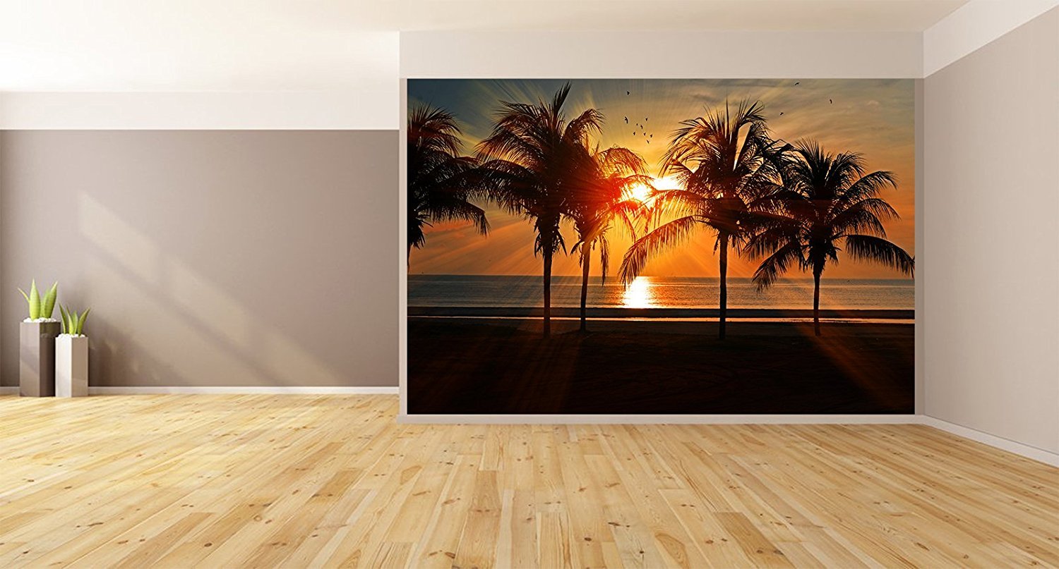 Amazon Com Palm Trees With Sunset Removable Wallpaper Wall