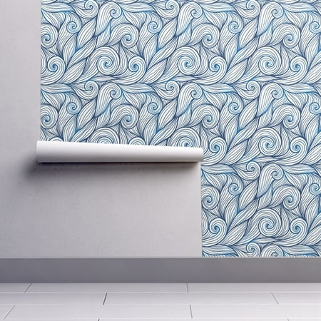 Peel And Stick Removable Wallpaper Blue Swirls White Swirly Waves Nautical Ocean