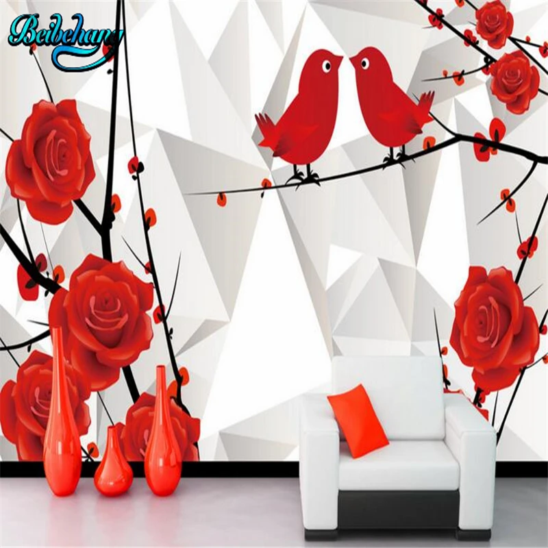 Us 15 0 Beibehang Custom Wallpaper Fresco Decoration Three Dimensional Origami Background Love Bird Red Roses Tv Background Wall In Wallpapers From